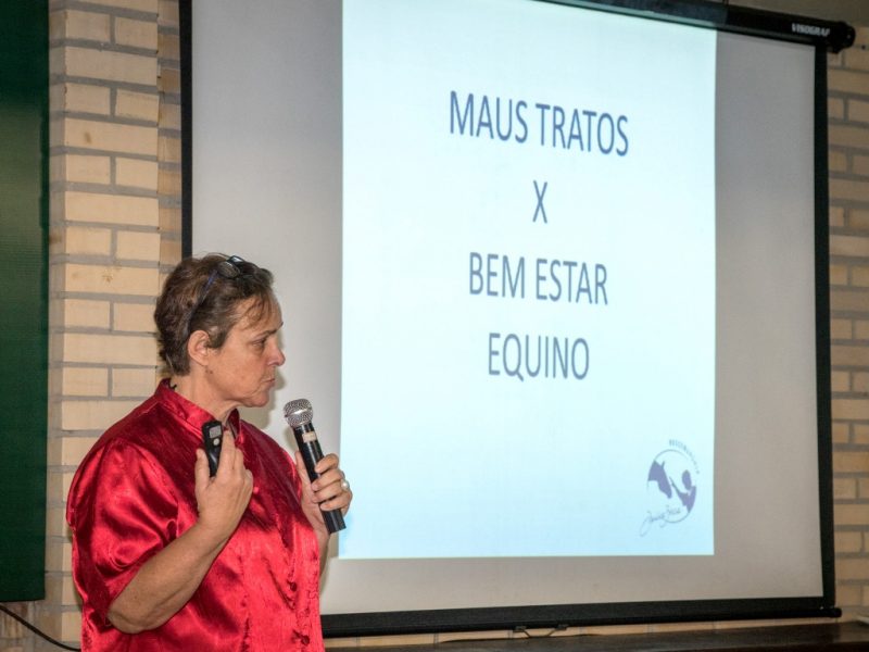 Na tarde de quinta-feira, 30 de agosto, o seminário do Sindicato dos Médicos Veterinários no Estado do Rio Grande do Sul (Simvet/RS), na Casa do Veterinário, recebeu a treinadora de cavalos Denise Bicca, que falou para um grupo de estudantes de veterinária e domadores de equinos. Desde a infância, Denise convive com cavalos e hoje se dedica à recuperação e diagnóstico de problemas de saúde daqueles que estão na equitação.