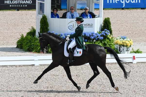 A Suécia atualmente ocupa o lugar da medalha de prata com Tinne Vilhelmson Silfven e Don Auriello com 73,1% e Juliette Ramel e Buriel KH com 75,25%. Os EUA entraram na posição de medalha de bronze com pontuação de 73,45% e 74,86% de Steffen Peters (Suppenkasper) e Adrienne Lyle (Salvino), respectivamente.
